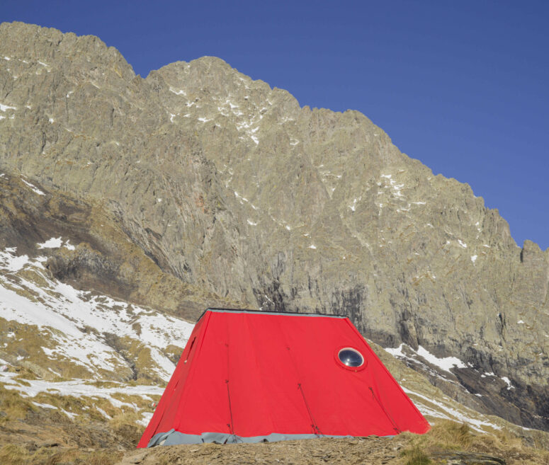 Il nuovo bivacco costituisce la prima architettura tessile d’emergenza permanente in ambiente alpino: un prototipo sperimentale che unisce sostenibilità, rapidità di montaggio e ottimizzazione degli spazi. Il sistema costruttivo, sviluppato ad hoc, consente l’installazione in contesti estremi grazie a un peso complessivo di soli 2.500 kg e a una superficie di appoggio ridotta, di circa 2,5 mq.