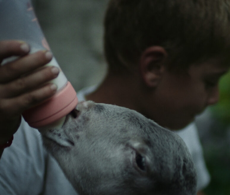 I would like to ask Giulio—how did you devise your short film? In particular, I am thinking of the square format you used. From the title—“mountain” in Bergamo dialect—we see the role of the mountain, which is omnipresent and which shapes the rhythms and experiences of those who live there. In the film, however, this remains in the background of the actions of the young protagonists. Yours was a stylistic choice that does away with open and descriptive fields to immerse the viewer in an intimate perspective and draws attention to the details and interactions between family members and between them and the animals. The mountain, therefore, is not represented by the landscape. What led to you to take this decision?