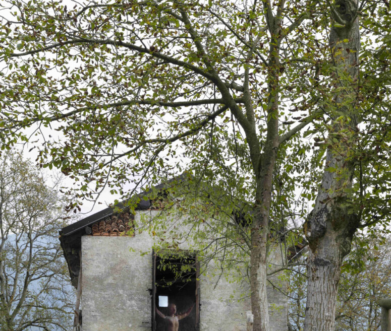 Inserita nella Stalla Gherba di Sottochiesa, edificio rurale della Val Taleggio fortemente caratterizzato, l’opera stabilisce un legame profondo con un luogo che accoglie animali, fatiche quotidiane e la valle che si apre dinnanzi al suo sguardo. Lo spazio, abitualmente destinato al sostentamento, diventa qui custode di una scultura che interroga il rapporto tra cura, rigenerazione e comunità.